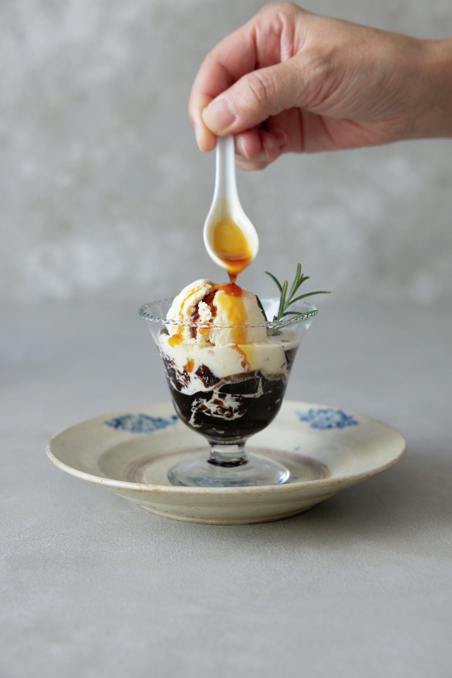 みりんを半量に煮詰めることで、液色が濃くなり、しっかり甘くて美味しい、とろっとしたシロップに。