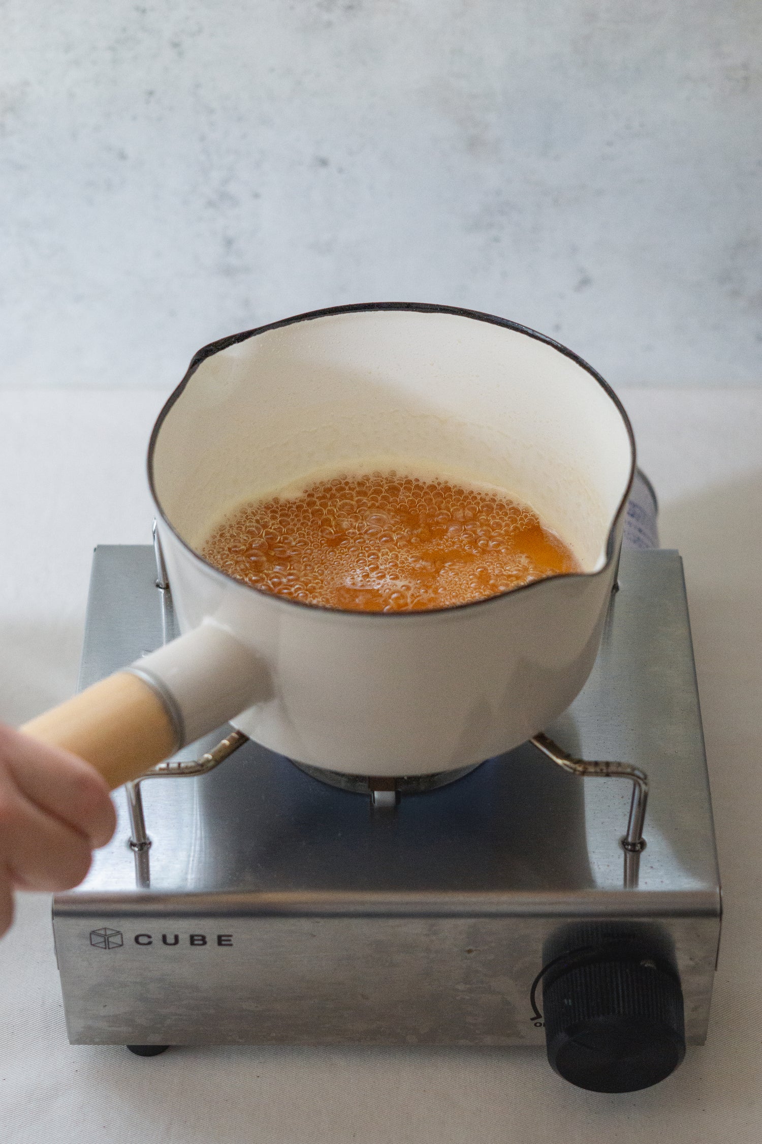 おうちのみりんを半量に煮詰めるだけでとろっとしたシロップに!100gのみりんなら、たった5分で仕上がります◎